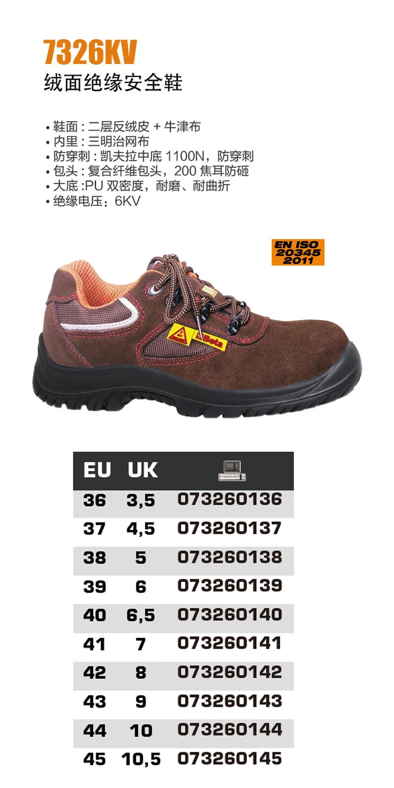 BETA凯夫拉纤维中底1100N防穿刺劳保鞋百塔7326KV耐磨防砸翻皮绒面绝缘6KV安全防护鞋